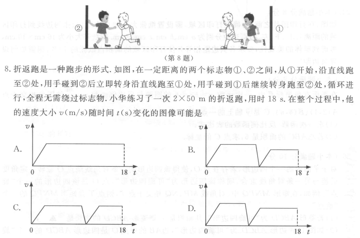 考虑折返跑时两次距离相等,由于体力原因,在正常情况下,第二次折返后速度小于第一次时的速度,由于折返后与折返前的距离严格相等,且折返时速度为0,故折返返回起点所用时间严格大于从起点出发跑到折返点的时间。